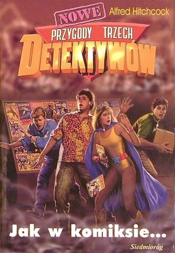 Jupiter, Pete i Bob zyskują możliwość szybkiego zarobienia gotówki, odkupują za marne grosze komiksy od wujostwa Jupitera, które mogą być warte znacznie więcej. Detektywi pojawiają się na KonMiKomie. Gdy już próbują coś sprzedać, nagle pojawia się postać w stroju Szkarłatnego Upiora. Wyrzuca na podłogę kulki, które wytwarzają dym i gdy nikt nic nie widzi, zabiera komiksy. Na chłopców czeka nowa zagadka do rozwiązania... Źródło: merlin.pl