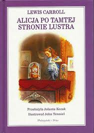 Alicja w jednej chwili znalazła się po tamtej stronie i lekko zeskoczyła na podłogę lustrzanego pokoju. Przede wszystkim sprawdziła, czy na kominku płonie ogień, i z przyjemnością przekonała się, że owszem, najprawdziwszy: buzował tak samo dziarsko jak ten, który zostawiła z tamtej strony lustra. «A więc będzie mi tu tak ciepło, jak w starym pokoju - pomyślała Alicja. - A nawet cieplej, bo nikt nie skrzyczy mnie, że siedzę za blisko kominka. Ależ będzie śmiesznie, kiedy zobaczą mnie przez lustro po tej stronie i nie będą się mogli do mnie dostać!» Dalsze losy Alicji, bohaterki najsłynniejszej baśni naszych czasów, Alicji w Krainie Czarów Lewisa Carrolla. Źródło: lubimyczytac.pl