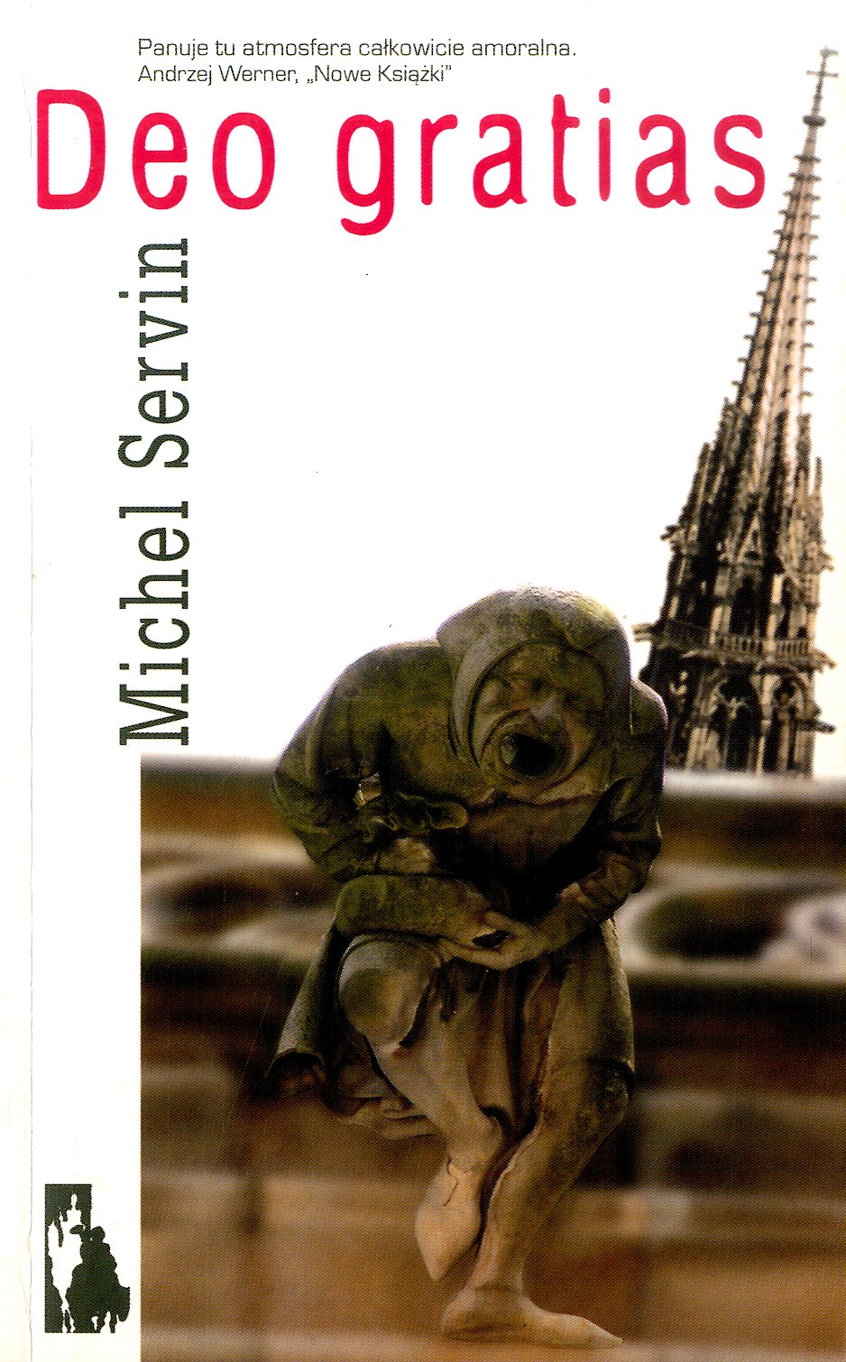 Deo gratias Michela Servina, powieść nagrodzona prestiżową Prix International du Premier Roman, to inteligentna i zjadliwa satyra na wynaturzenia przedsoborowego katolicyzmu. Wyznania gorliwego sługi kościoła, a zarazem złodzieja okradającego puszki kościelne nawiązują do najlepszych wzorów francuskiej komedii obyczajowej, łącząc przy tym komizm z bogatym tłem obyczajowym i wnikliwą obserwacją godną najlepszych dokonań prozy psychologicznej. Powieść ukazała się w 1961 roku na rok przed rozpoczęciem obrad Soboru, który oczyścić miał kościół z wyszydzanych w niej zjawisk a mimo to nie straciła, niestety, na aktualności. Źródło: lubimyczytac.pl