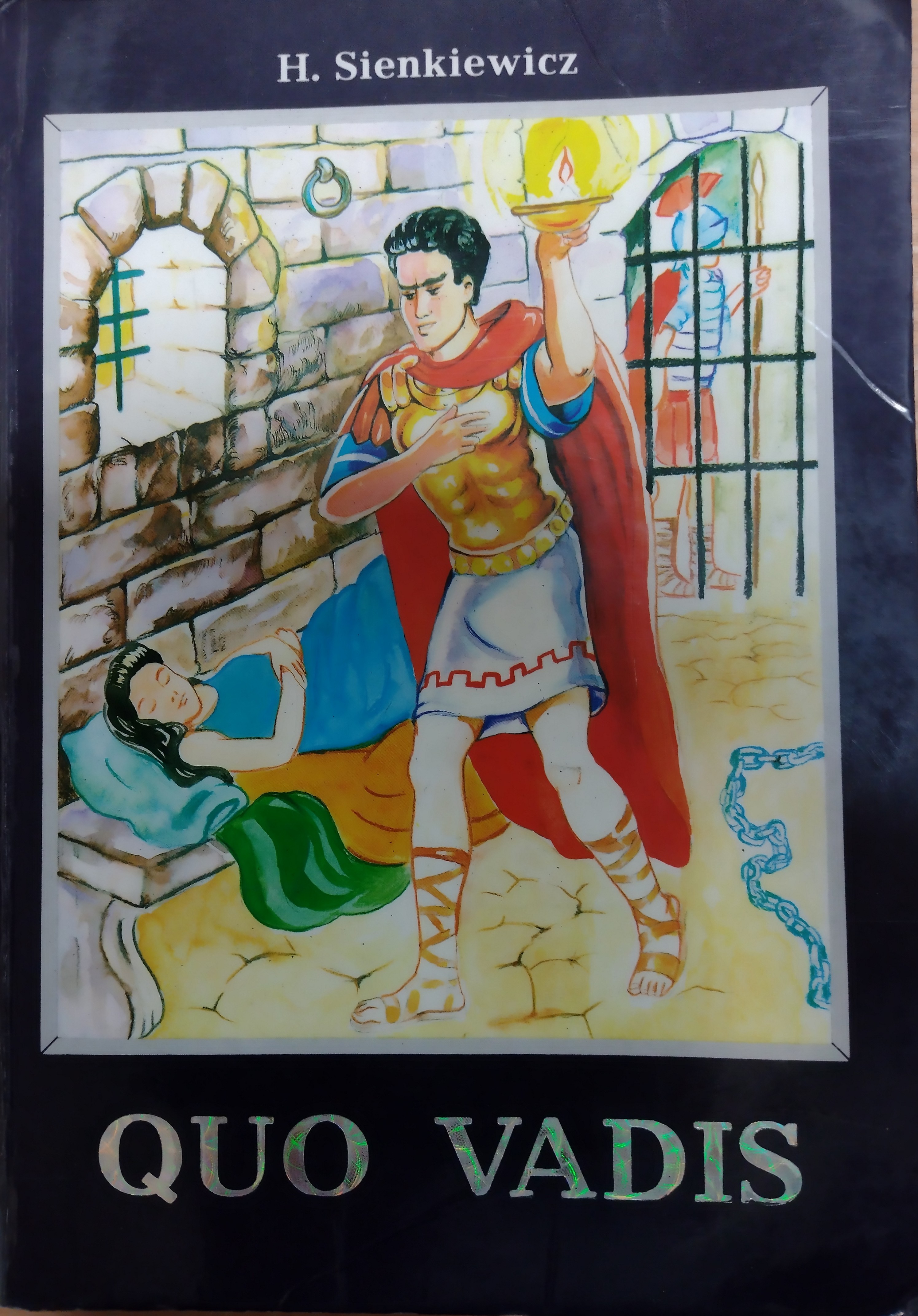 Głównym wątkiem powieści jest miłość Winicjusza i Ligii. Należą oni do dwóch odrębnych światów: Winicjusz jest patrycjuszem rzymskim, Ligia zakładniczką pochodzącą z barbarzyńskiego plemienia Ligów, a także chrześcijanką. Wątek miłosny, będący w pełni fikcyjnym, posiada liczne zwroty akcji: ucieczkę Ligii, jej poszukiwania przez Winicjusza, próbę porwania, przemianę Winicjusza i przyjęcie przez niego chrztu, wreszcie uwięzienie i cudowne ocalenie na arenie. Kolejny wątek powieści, historyczny, skupia się na osobie rzymskiego cezara Nerona, a także prześladowaniach i szerzeniu się wiary chrześcijańskiej. Istotną dla utworu postacią jest także Petroniusz. Patrycjusz rzymski, bliski doradca Nerona, wyrocznia smaku i elegancji stanowi symbol odchodzącej kultury antycznej. Balansujący na krawędzi życia i śmierci, krytykuje pomysł Cezara i przegrywa. Tak jak zaczął, kończy akcję umierając samobójczo w ramionach ukochanej Eunice. Najbardziej tragiczną i jednocześnie komiczną postacią jest Chilon Chilonides. Nie ma zasad moralnych i jest gotów sprzedać niewinnego. Jednak i w nim zachodzi poważna zmiana, na końcu umiera na krzyżu w obronie tych, których wydał chrześcijan. Punkt kulminacyjny stanowi walka Ursusa z bykiem. Pokonanie zwierza oznacza szczęśliwe zakończenie. Odtąd Ligia, Winicjusz i Ursus są pod opieką ludu rzymskiego. Ten moment symbolizuje także odwrót sympatii Rzymian od Nerona i zwrócenie się ku chrześcijanom. Źródło: lubimyczytac.pl