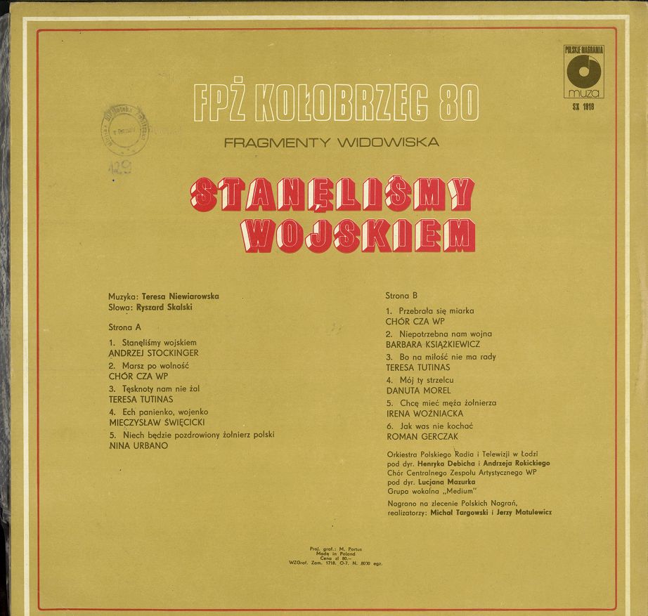 Orkiestra PRiTV w Łodzi p/d Henryka Debicha i Andrzeja Rokickiego ; Medium ; Chór Centralnego Zespołu Artystychnego WP pod dyrekcją Lucjana Mazurka.