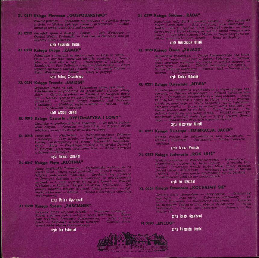 Czytają: Księga 1: Aleksander Bardini ; Księga 2: Andrzej Szczepkowski ; Księga 3: Andrzej Łapicki ; Księga 4: Tadeusz Łomnicki ; Księga 5: Marian Wyrzykowski.