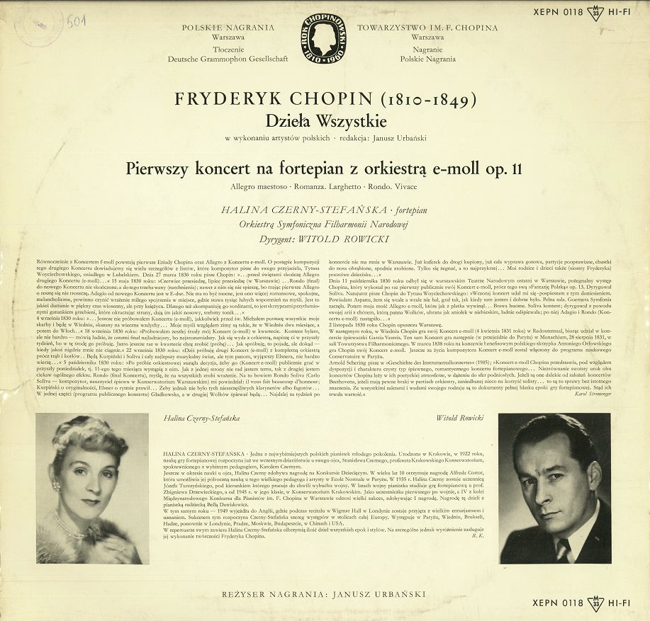 Halina Czerny-Stefańska, fortepian ; Orkiestra Symfoniczna Filharmonii Narodowej ; Witold Rowicki, dyrygent.