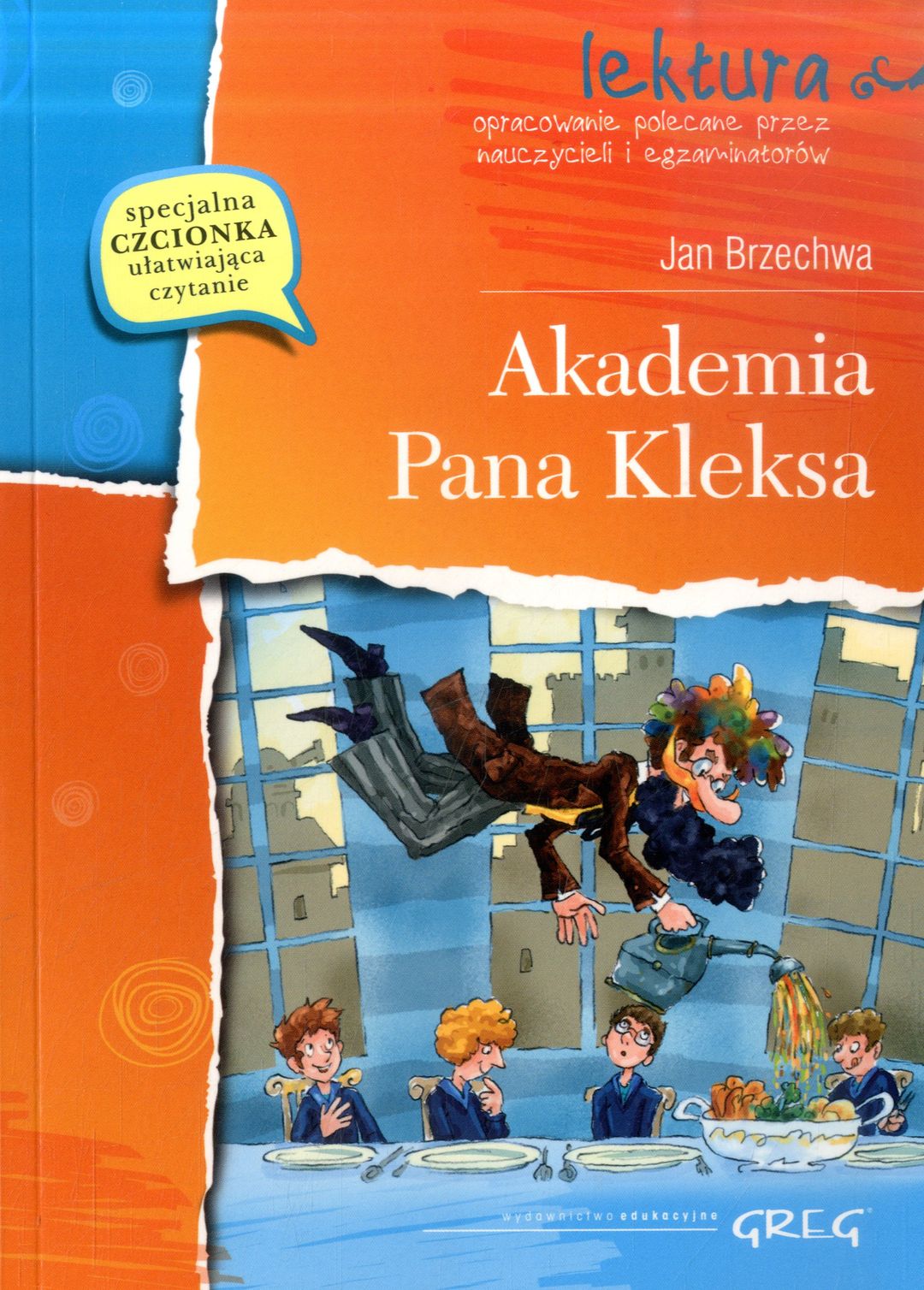 Na stronie tytułowej: Notatki na marginesie. Szczegółowe opracowanie. Streszczenie. Na okł.: Specjalna czcionka ułatwiająca czytanie.