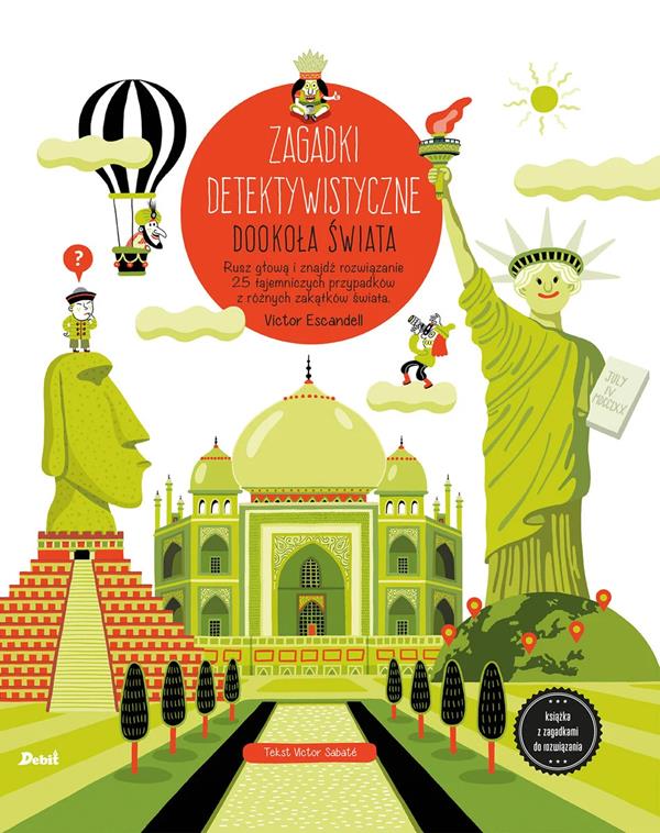 Na okładce: Książka z zagadkami do rozwiązania.