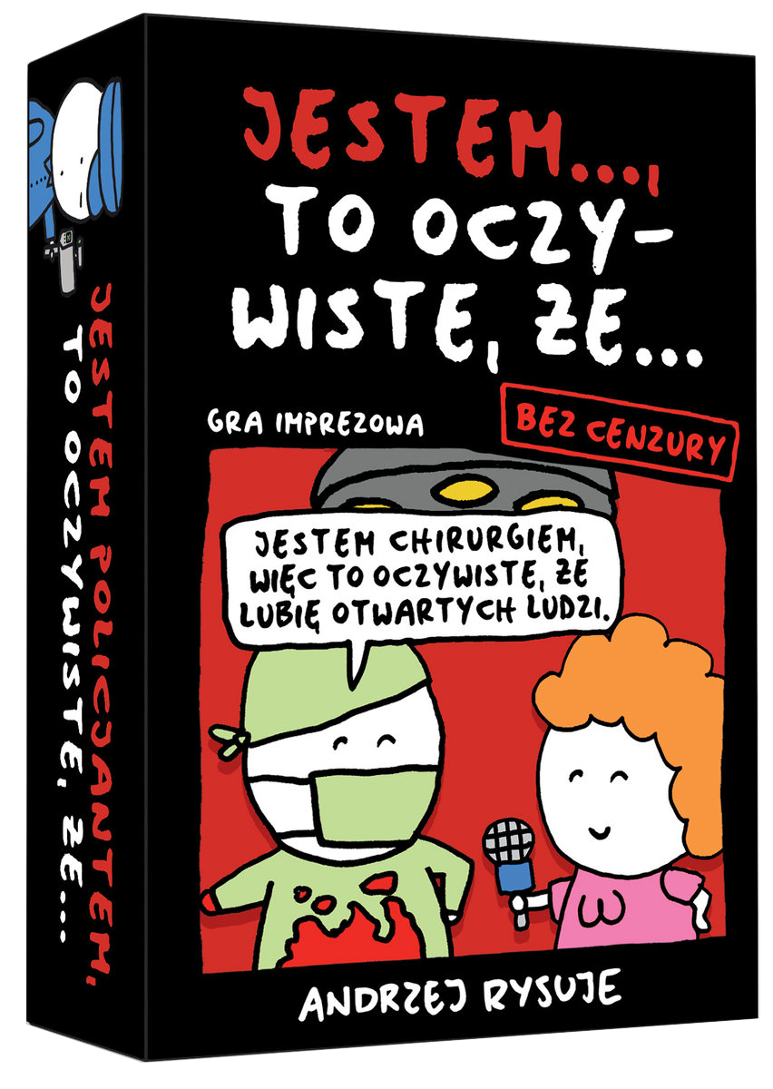 Jestem ... to oczywiste, że... (wersja bez cenzury) - To zabawna gra towarzyska, gdzie granice są tylko w naszej głowie – bawcie się bez cenzury, śmiało komentując, co w życiu jest zabawne, dziwne i trochę pikantne! Waszym celem jest stworzenie i wybranie najbardziej absurdalnej i zabawnej kombinacji! Wykorzystajcie swoją wyobraźnię i poczucie humoru, aby stworzyć najzabawniejsze scenariusze! Źródło: rebel.pl