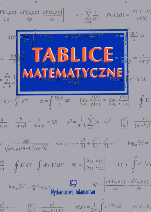 Tablice matematyczne : [ praca zbiorowa ] / red. Witold Mizerski. - Wyd.3 rozsz. - Warszawa : Adamantan, 1999. - 407 s. : tab., wykr. ; 21 cm.