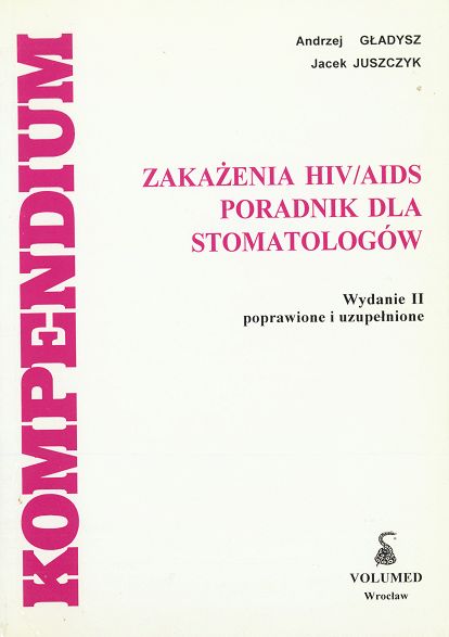 Zakażenia HIV/AIDS - poradnik dla stomatologów / Andrzej Gładysz, Jacek Juszczyk. - Wydanie 2. poprawione i uzupełnione. - Wrocław : Volumed, 1996. - 135, [1] strona : ilustracje ; 20 cm.